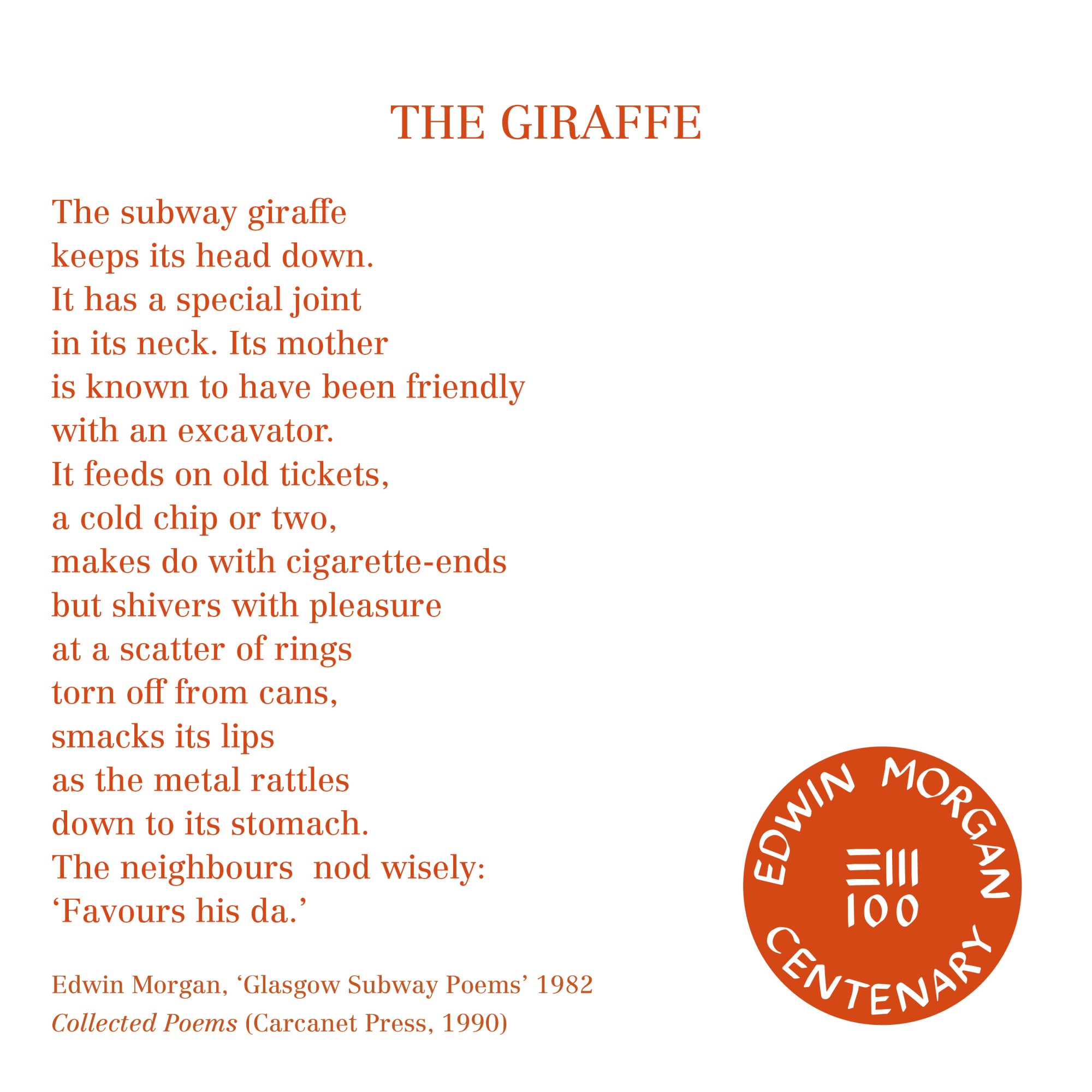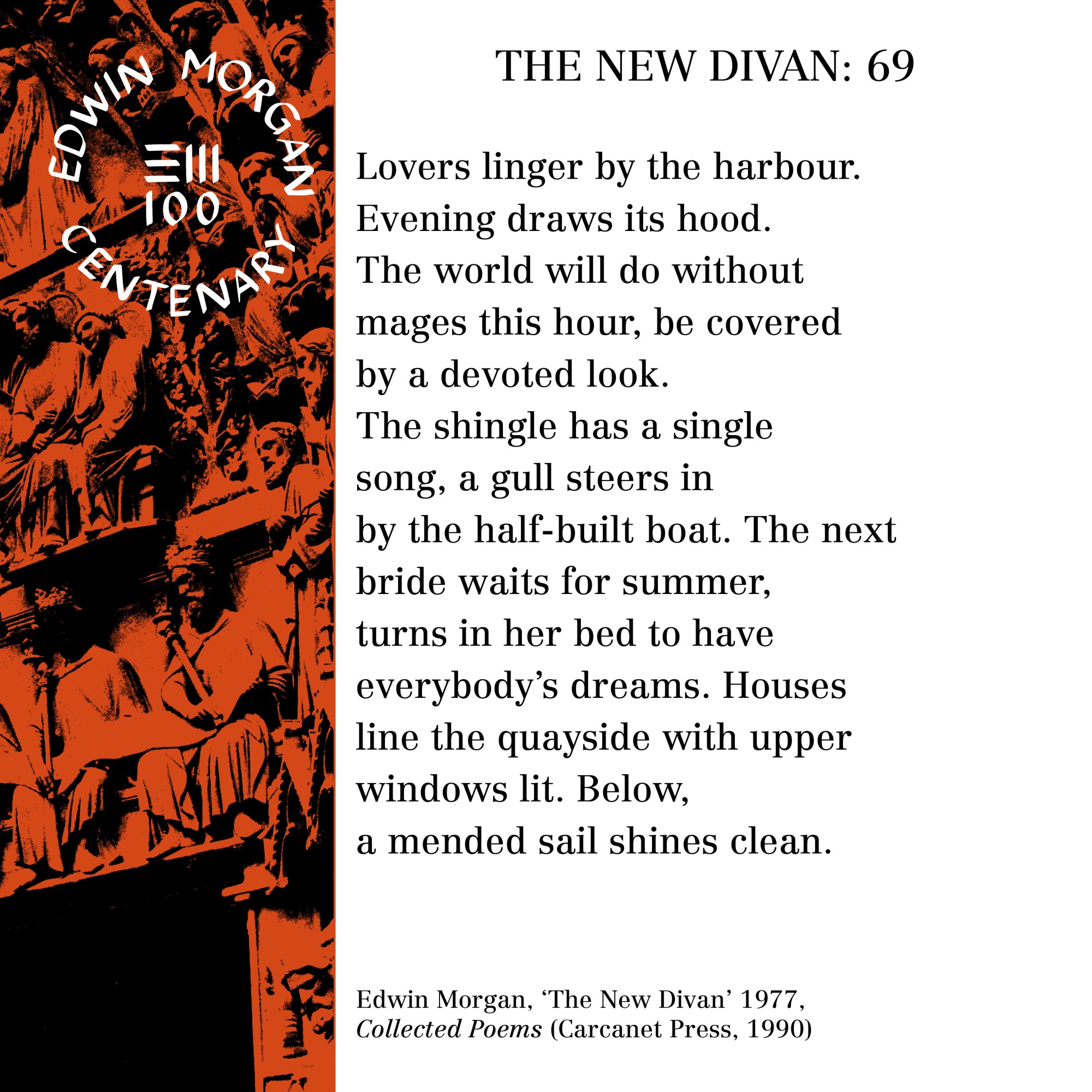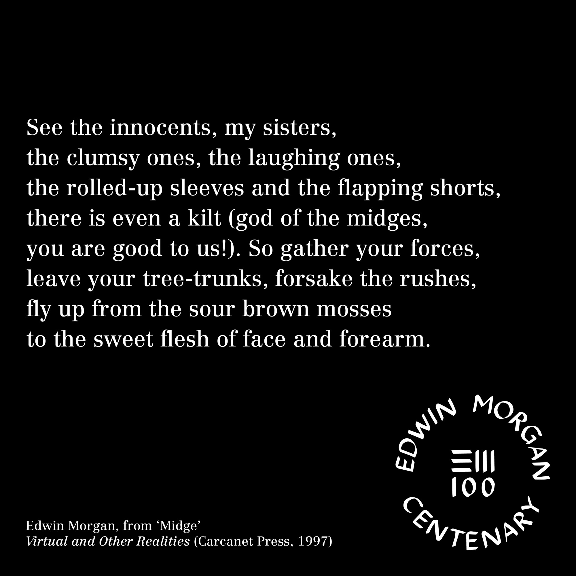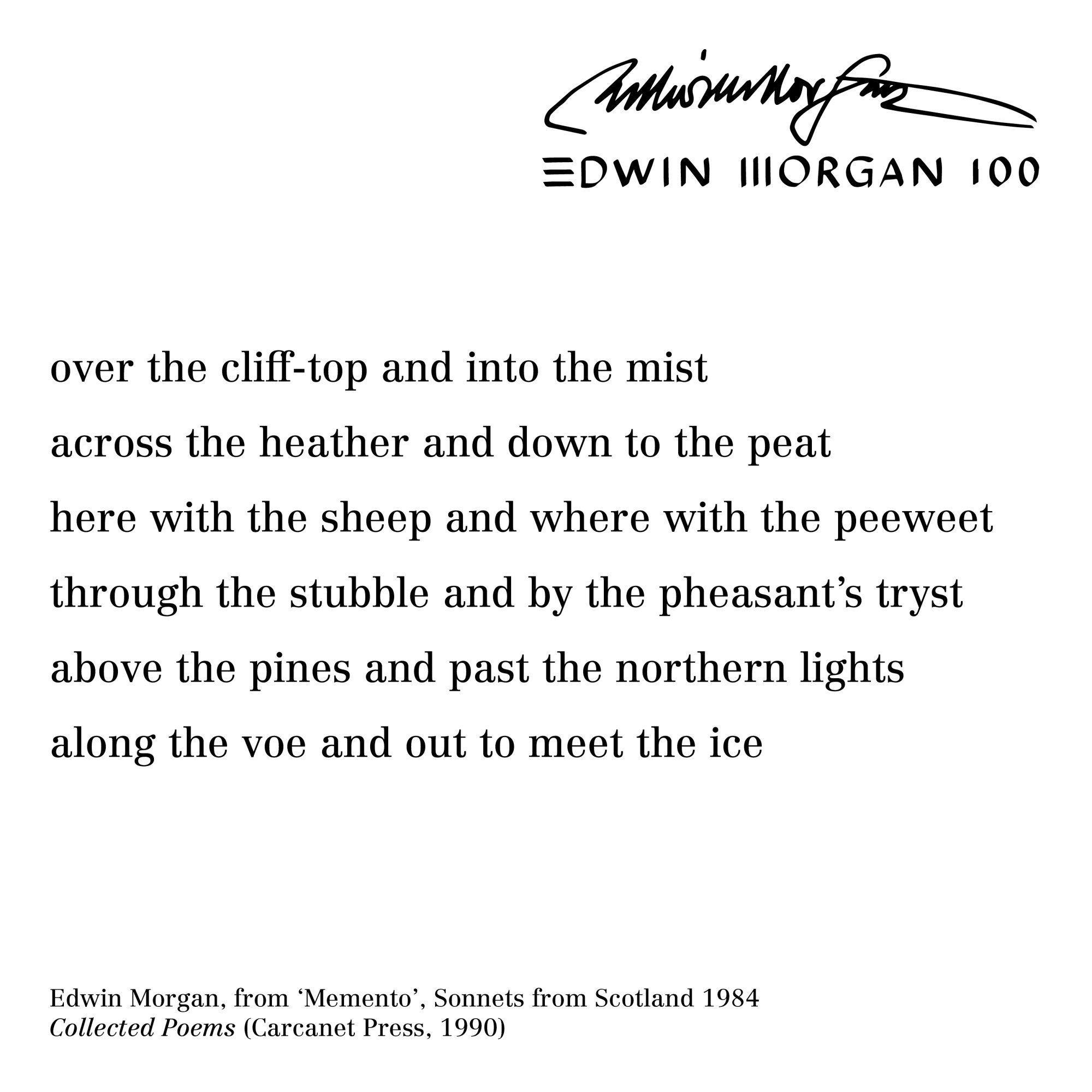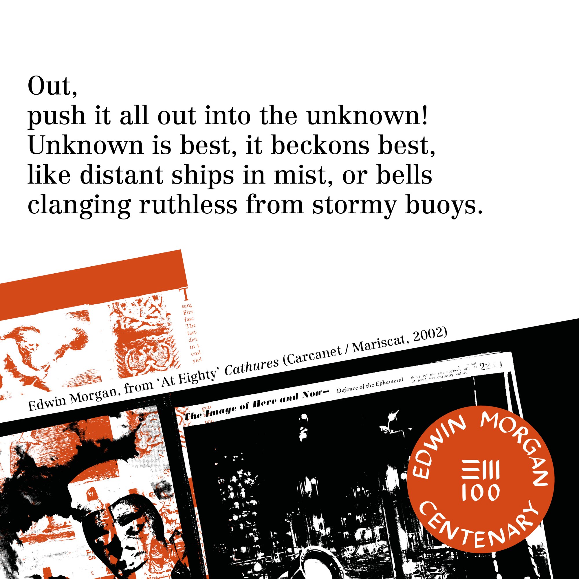 To mark the launch of the Edwin Morgan Centenary on April 27, 2020 – the Edwin Morgan Trust, in partnership with Carcanet Press, are making Edwin Morgan poems and lines available as ‘Birthday Cards’ for sharing online to celebrate Edwin Morgan’s 100th Birthday – April 27.