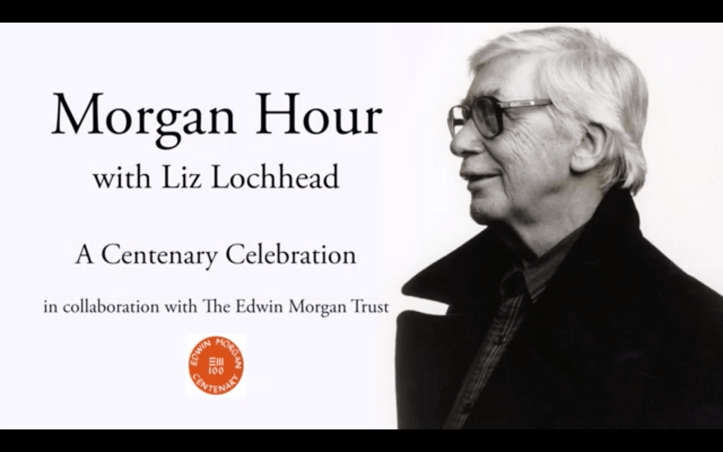 Edwin Morgan Trust has teamed up with The Big Lit to produce ‘Morgan Hour with Liz Lochhead: A Centenary Celebration’. In this one-hour video, we are invited into the home of celebrated poet and former Scots Makar Liz Lochhead to hear her reflect on her friendship with Edwin Morgan and share some of her most loved poems.