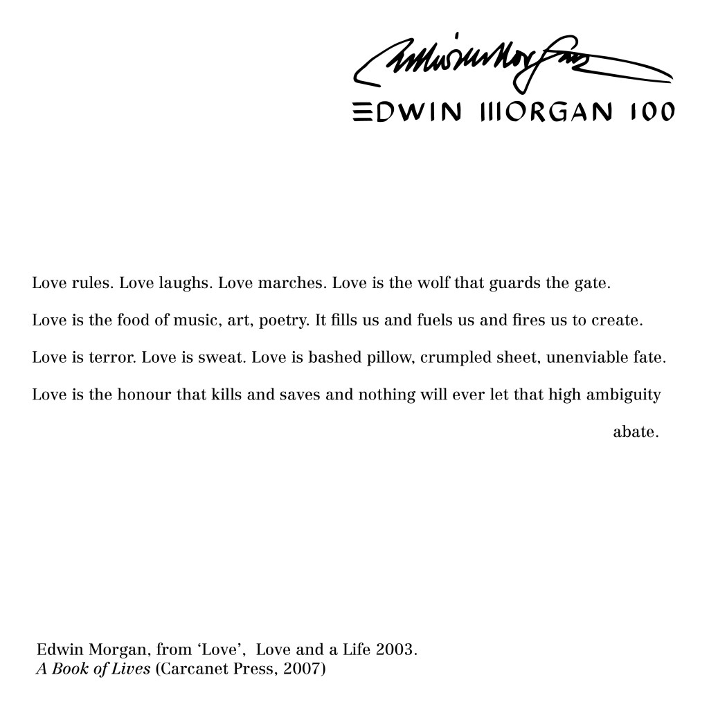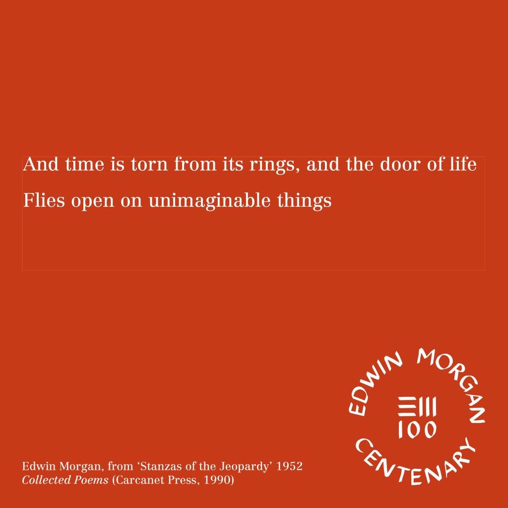 Thank you for your support this year – it has been a privilege to share the joy of Edwin Morgan during these unprecedented times.