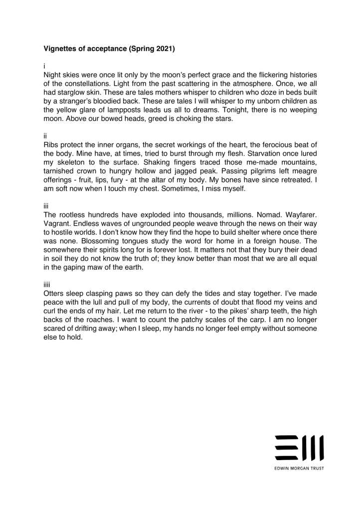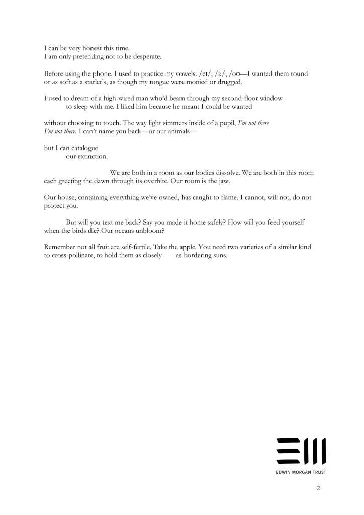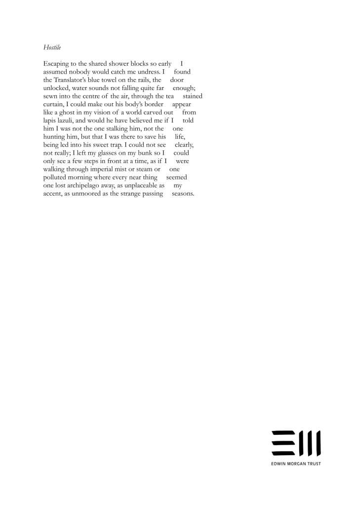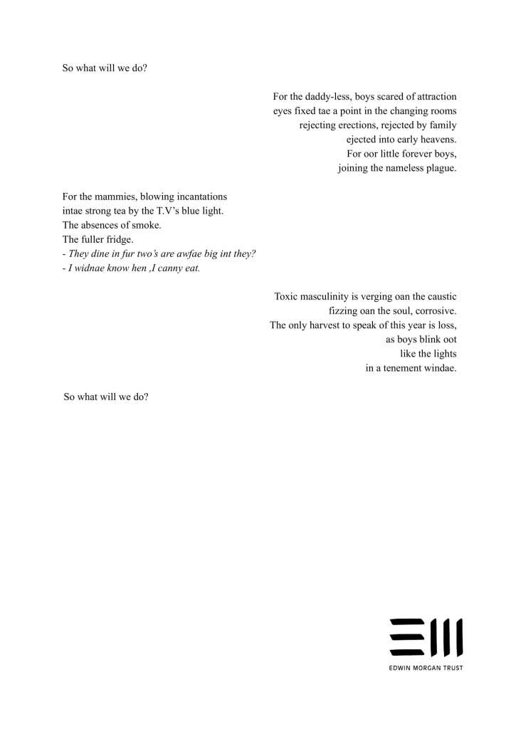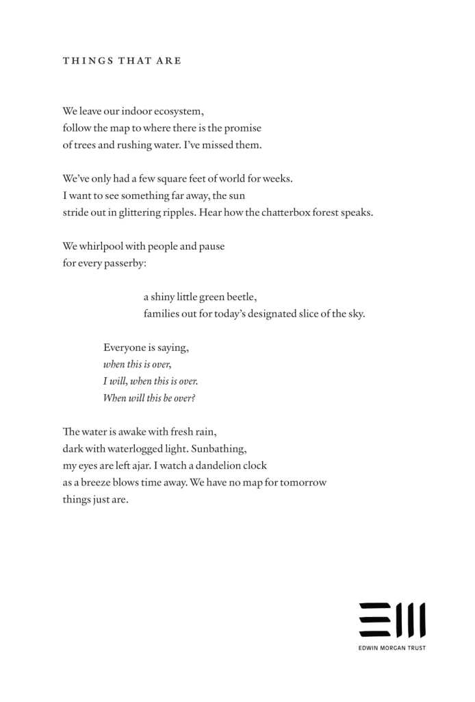 Below is a selection of poems submitted by the eight poets shortlisted for this year’s Edwin Morgan Poetry Award. Enjoy this selection of works by some of Scotland’s most exciting emerging poets aged 30 and under. Find poets’ bios and website links here. All poems are copyright © the individual poets 2022.