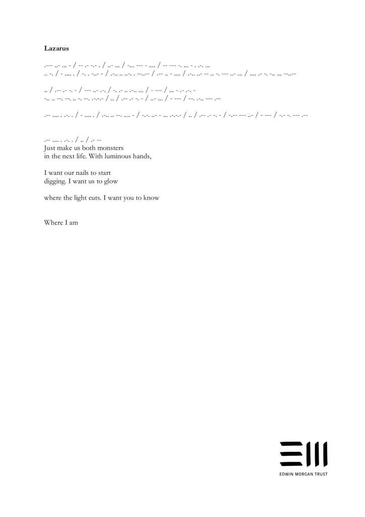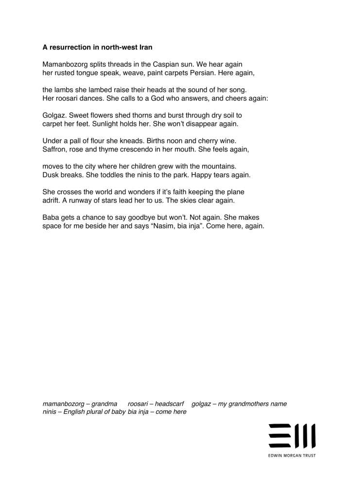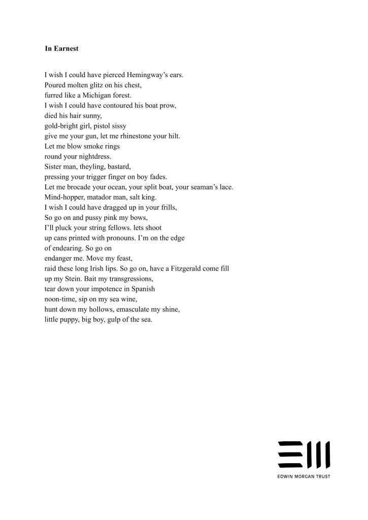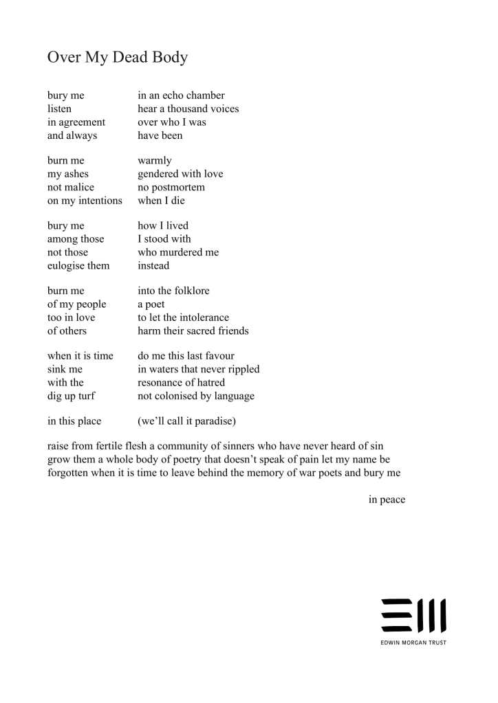 Below is a selection of poems submitted by the eight poets shortlisted for this year’s Edwin Morgan Poetry Award. Enjoy this selection of works by some of Scotland’s most exciting emerging poets aged 30 and under. Find poets’ bios and website links here. All poems are copyright © the individual poets 2022.